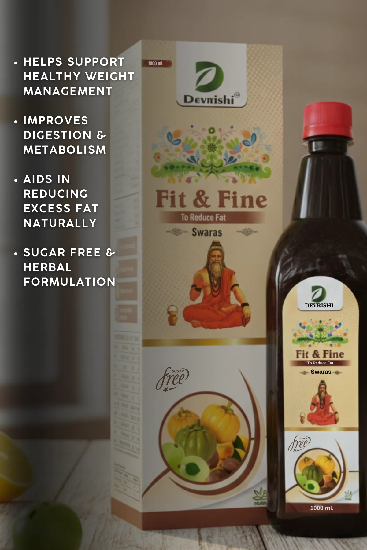 Devrishi Fit & Fine Swaras (1000 ml) is a specially crafted Ayurvedic herbal juice designed to support natural weight management and metabolic balance.