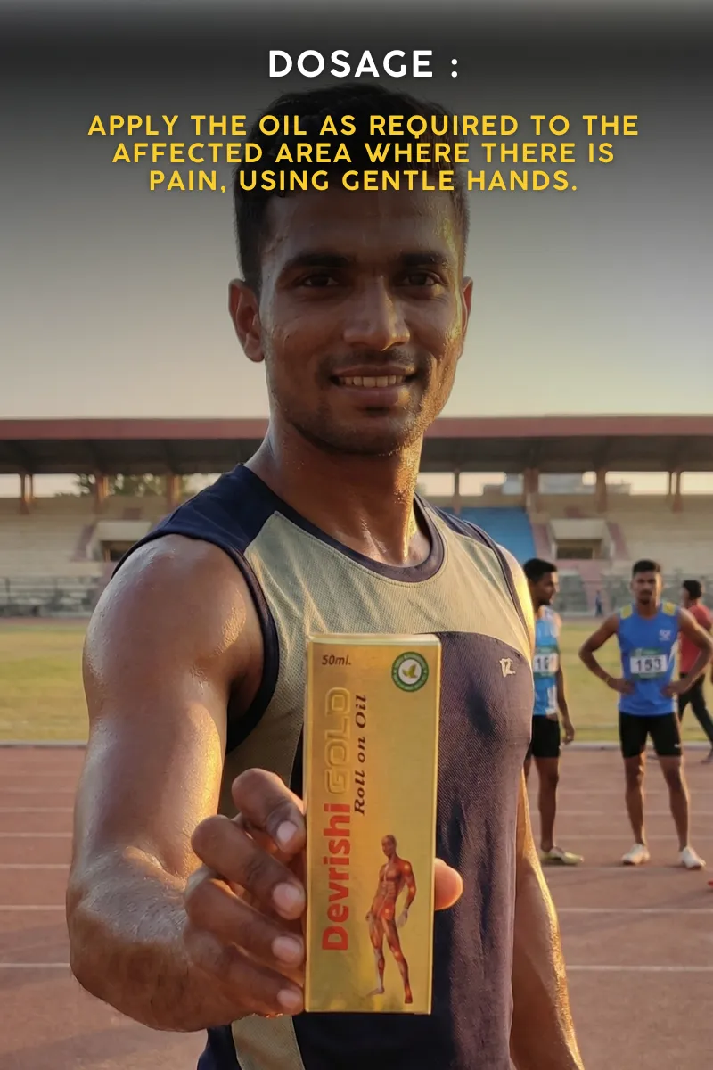 Devrishi Gold Oil is a premium Ayurvedic external application oil formulated to relieve muscular and joint pain naturally. It works quickly to reduce inflammation, improve blood circulation, relax stiff muscles, and restore flexibility in joints.