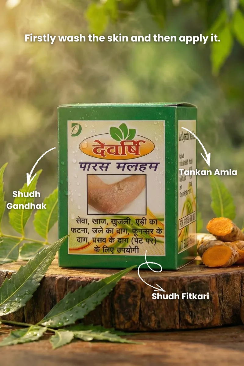Devrishi Paras Malham is a herbal formula for skin care solution.