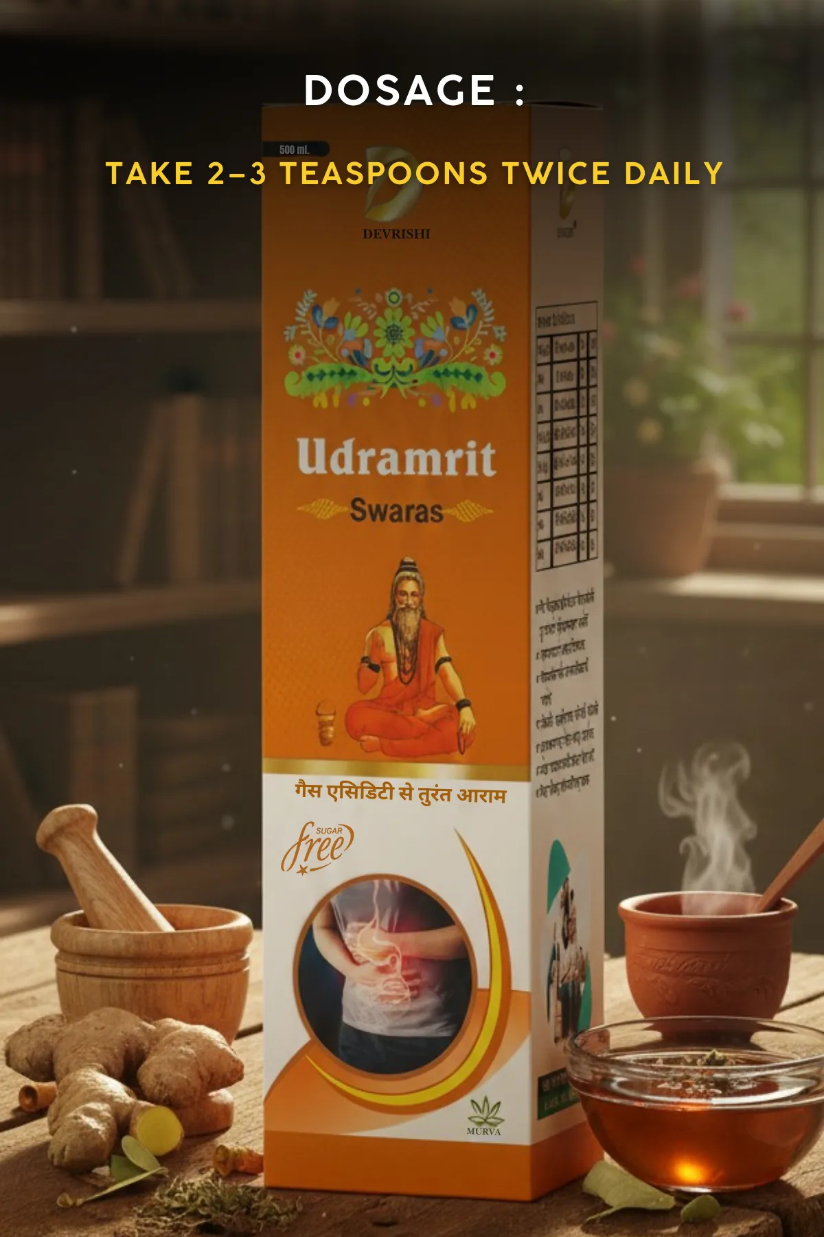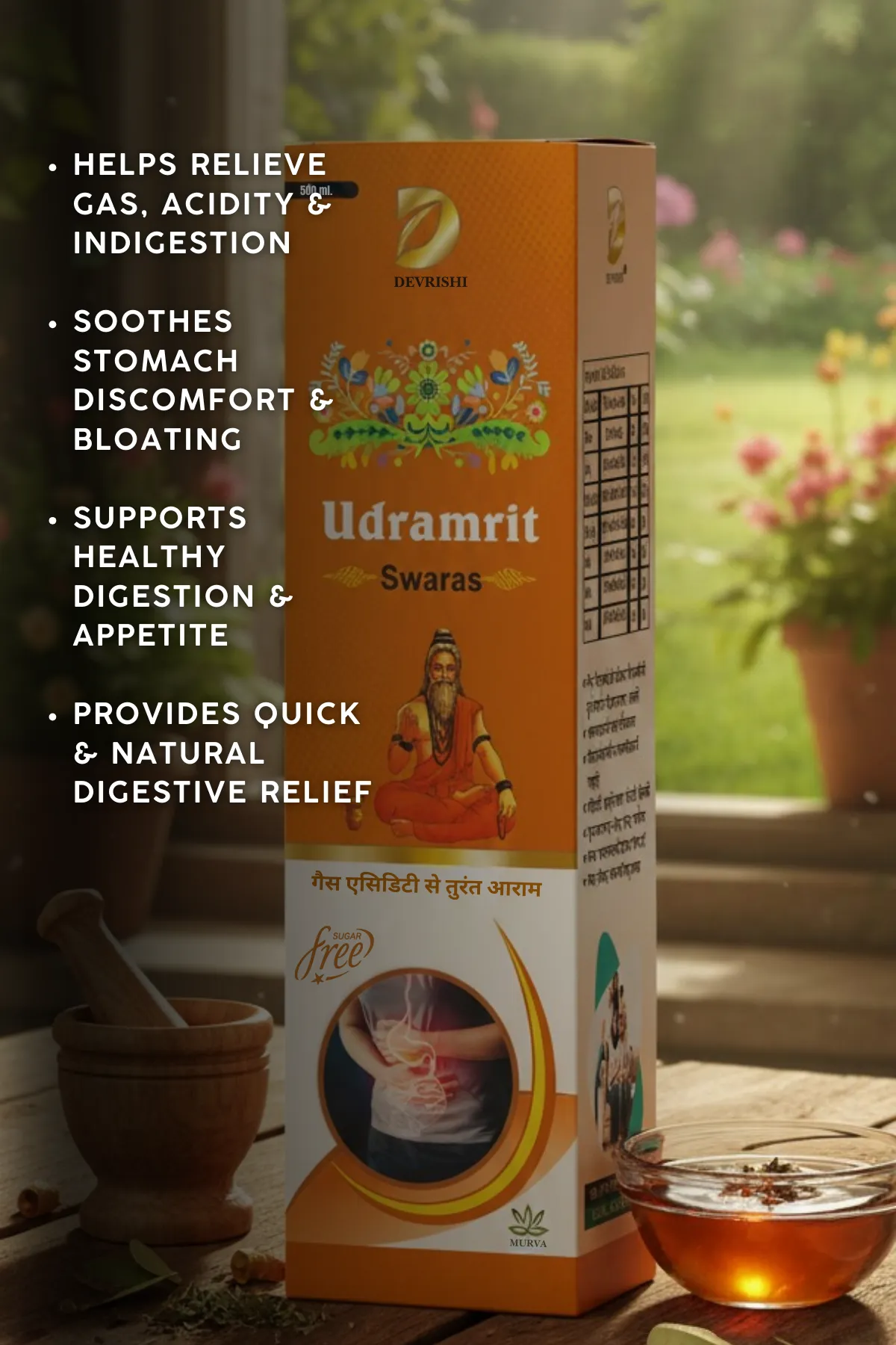 Devrishi Udramrit Swaras (500 ml) is a traditional Ayurvedic formulation designed to support digestive comfort and stomach health naturally.