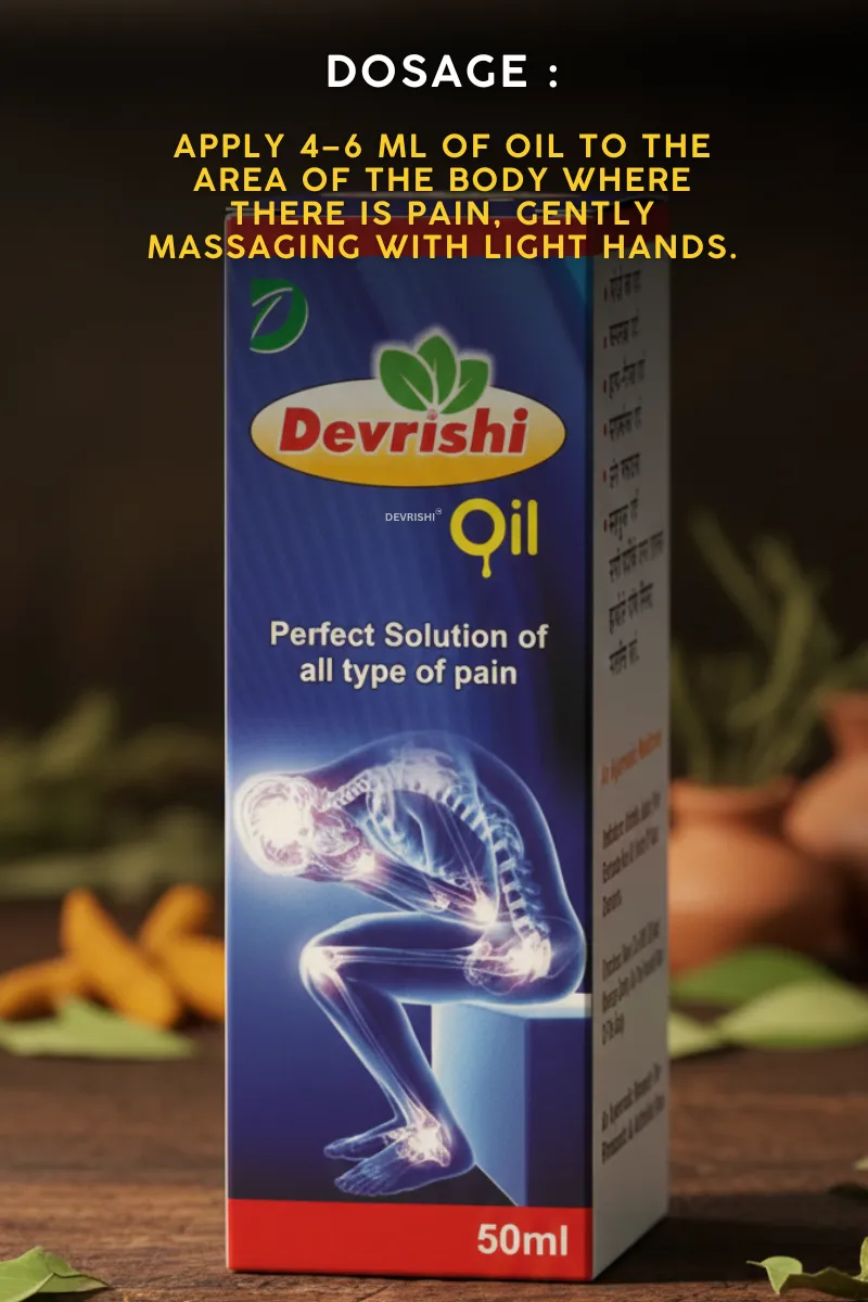 Devrishi Oil is combines powerful analgesic oils designed to mitigate pain and discomfort. The ingredients have been carefully chosen for their penetrating, healing, and warming properties to invigorate senses and relax muscles.