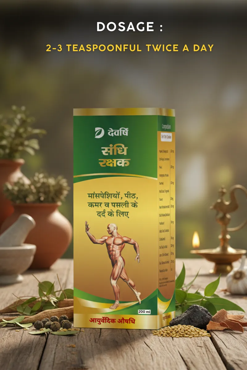 Devrishi Sandhi Rakshak Ras is a ayurvedic preparation given in the form of juice. This herbal juice is suggested to treat and reduce pains due to inflammation. The juice is found to be effective against muscle pain, joint pain and overall pains.